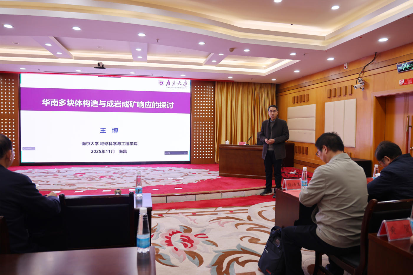 会上,南京大学地球科学与工程学院副院长、教授、博士生导师王博受邀作《华南多块体构造及其中生代控岩控矿效应》报告。报告详细论述了华南多块体构造对中生代岩浆、成矿作用的影响,多块体构造属性、物质组成、边界位置对构造变形扩展、成岩成矿类型的影响以及华南大陆地壳中生代热结构对花岗岩及成矿的影响。报告深化了对华南特色地质背景的科学认识,也为区域矿产勘查提供了重要的理论指导。