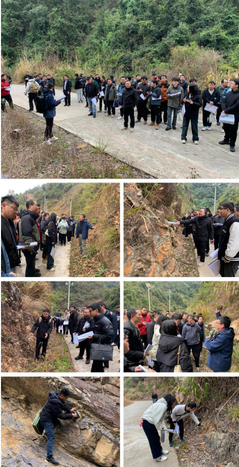 理论学习结束后,参训学员共同前往于都县罗坳镇进行野外实训,通过实地教学与现场交流,进一步巩固和深化了对理论知识的理解与运用。实训过程中,学员们分组跟随专家指导,运用数字填图系统、地质罗盘、放大镜等专业工具,在真实的地质剖面和复杂地形中,系统开展了野外地质剖面测量与路线填图实践操作。通过亲手测量岩层产状、识别典型岩性与构造、规范记录与描述地质现象、实时进行数字化数据采集与成图,学员们不仅将课堂所学规范与技术要求落到实处,更在实践中锤炼了观察分析、综合判断和解决实际问题的能力。