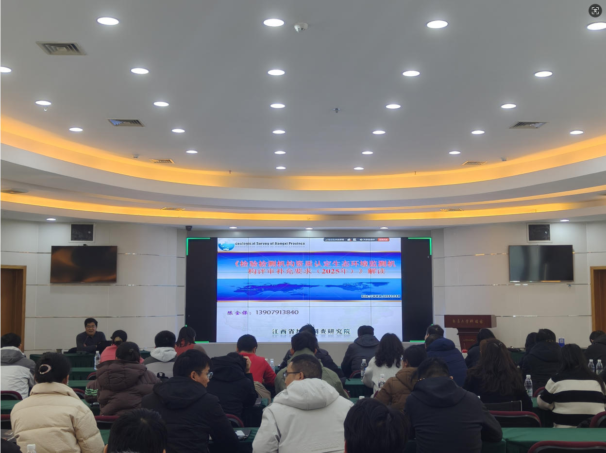 2026年2月1日,为深入贯彻落实国务院《生态环境监测条例》及国家市场监督管理总局、生态环境部联合发布的《检验检测机构资质认定生态环境监测机构评审补充要求(2025年)》,助力相关会员单位及检测机构准确把握新政精髓、提升合规运营与技术水平,由江西省地质学会实验测试专业委员会与江西省计量协会联合主办的生态环境监测新规宣贯培训班在南昌成功举办。