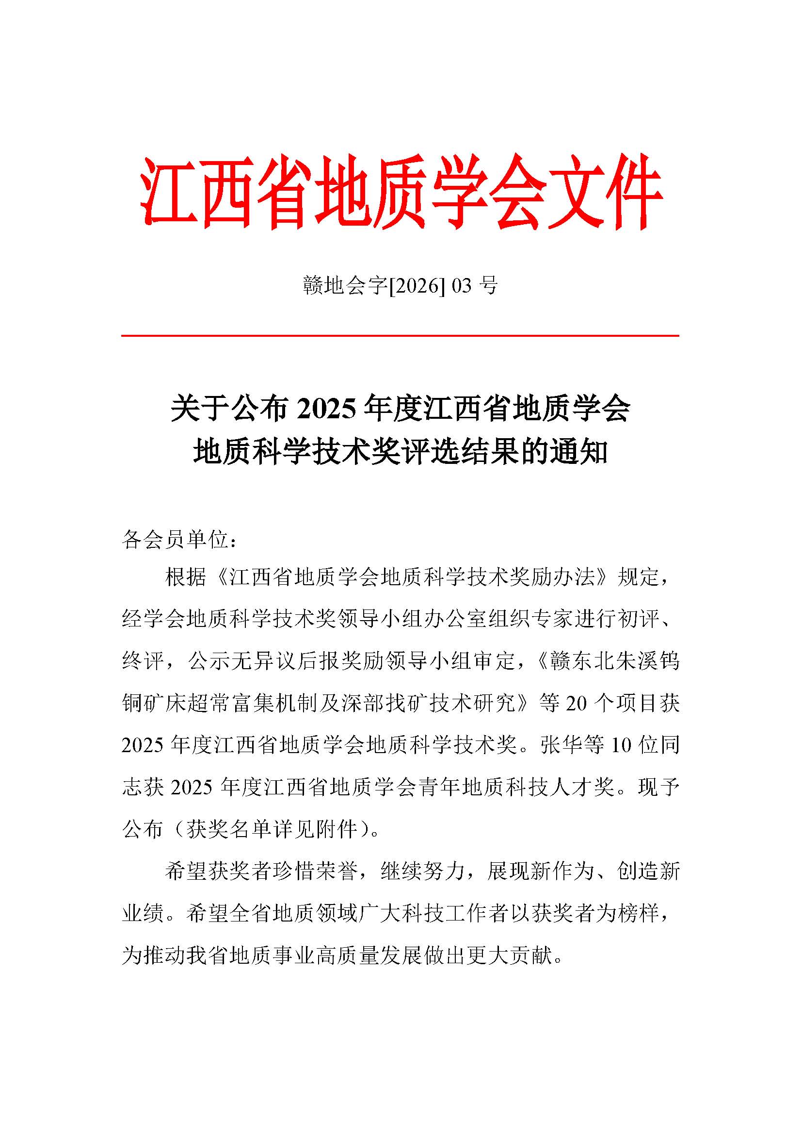 上一篇:关于2025年度江西省地质学会地质科学技术奖参评项目主要完成人调整的公示